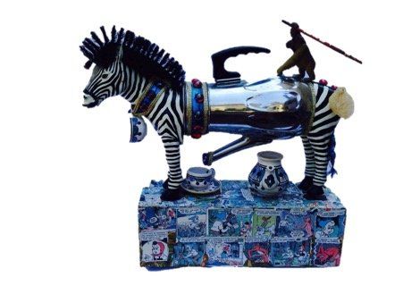 « Zaira est une artiste écologiste qui milite pour la reconnaissance des indiens Charrua en Uruguay. Elle utilise des matériaux récyclés et s'inspire dans les mythes et histoires de ses ancêtres pour délivrer un art original d'influence pré-colombienne, mexico-révolutionnaire et multi-coloré de la fôret d'Amazonie»